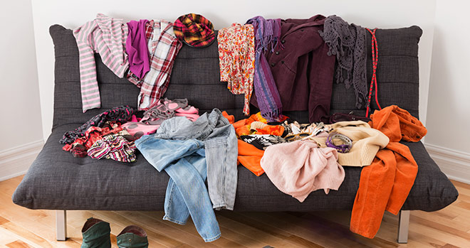 Junte as roupas de todo quarto na cama,e separe metade as limpas e na outra metade as sujas.